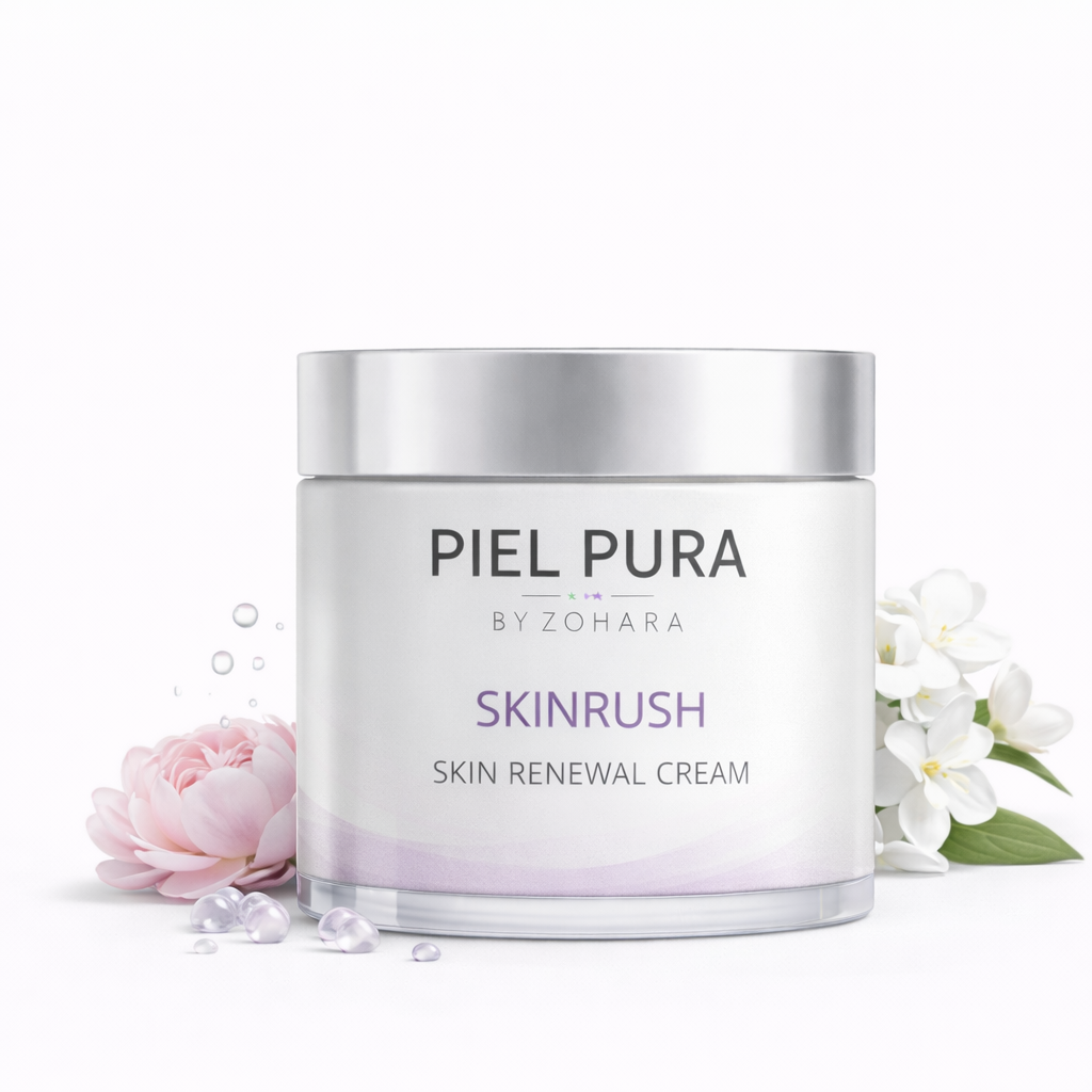 SKINRUSH Skin Renewal Cream מבית PIEL PURA BY ZOHARA הוא קרם חידוש עור ייעודי, שפותח כדי לתמוך בתהליך ההתחדשות הטבעי של העור ולשפר את מראה המרקם, האחידות והחיוניות.